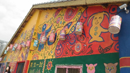 逛完了高美濕地,我們又往南行動了,來到第二天的一個景點─彩虹眷村,這個景點整個很彩虹,因為牆壁地板都是畫作,果然是網美網帥的打卡聖地,可惜我不是,只是來旁邊公園上廁所的)誤。