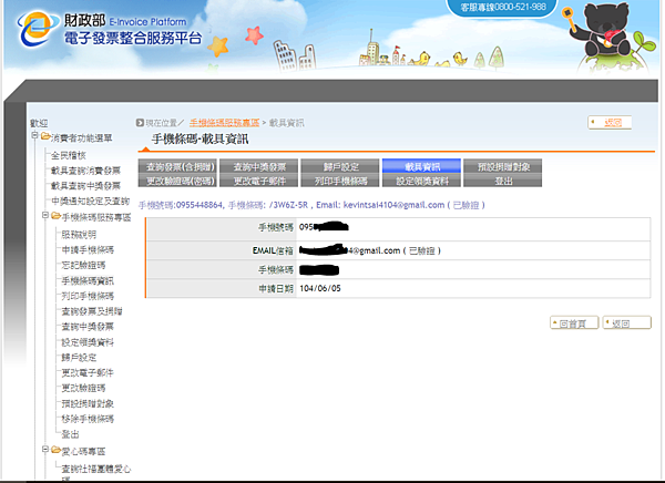 即完成申請,輸入你的手機號碼、密碼及驗證碼即可進入自己的發票專區。